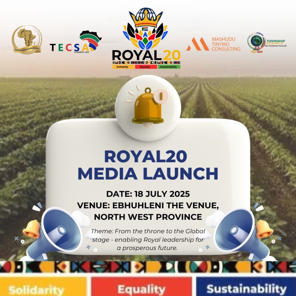 NORTH WEST PROVINCE, SOUTH AFRICA – July 16, 2025 – The Sovereign Congress of African Leaders (SCAL), in proud partnership with the TECSA Foundation, is set to officially launch the ROYAL20 (R20) – a groundbreaking G20-aligned Engagement Group. This initiative will formally elevate the voice and leadership of Africa’s traditional monarchs within the global development discourse.